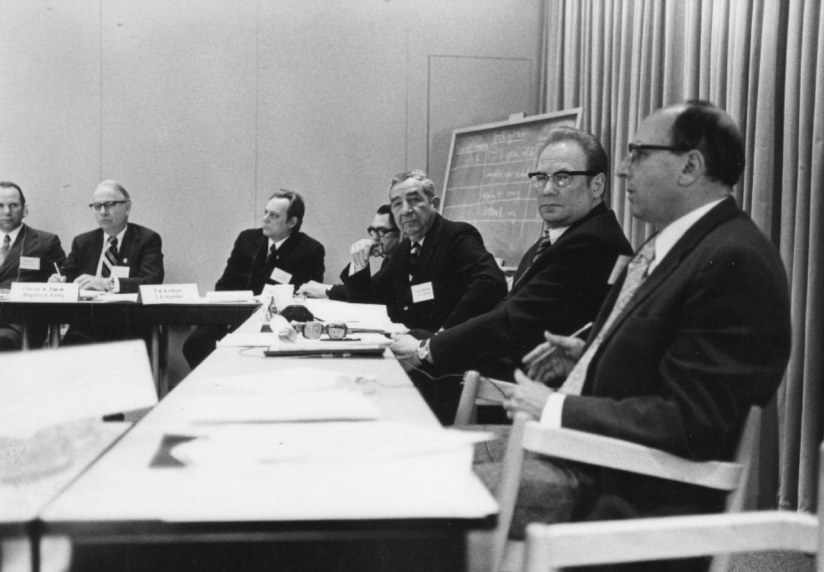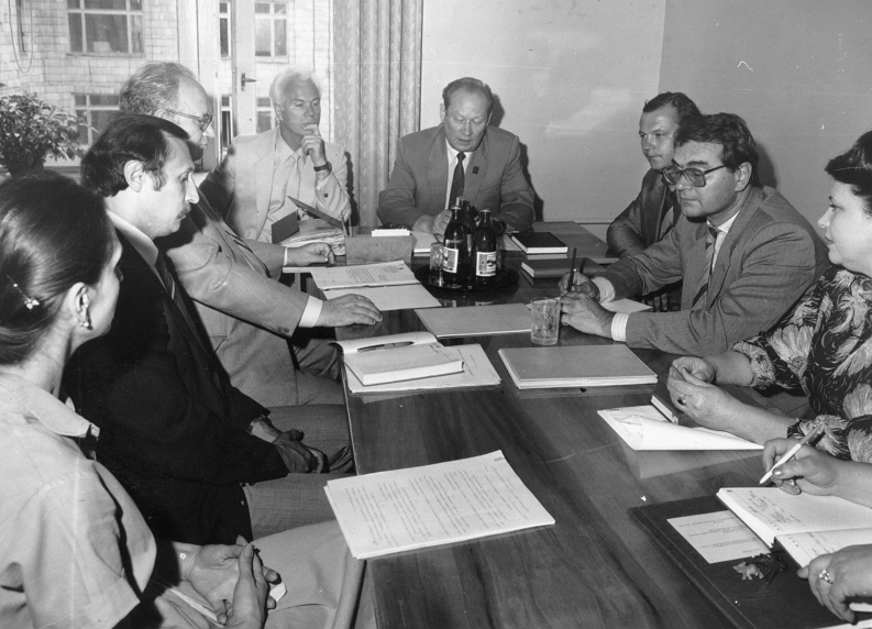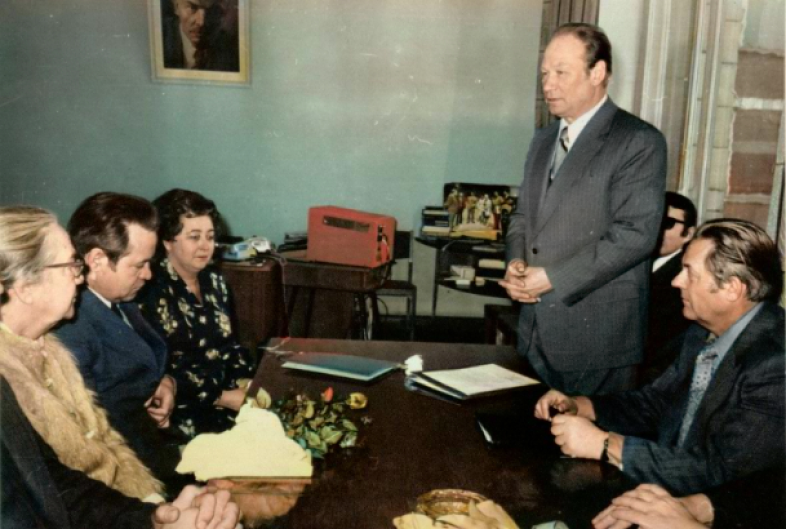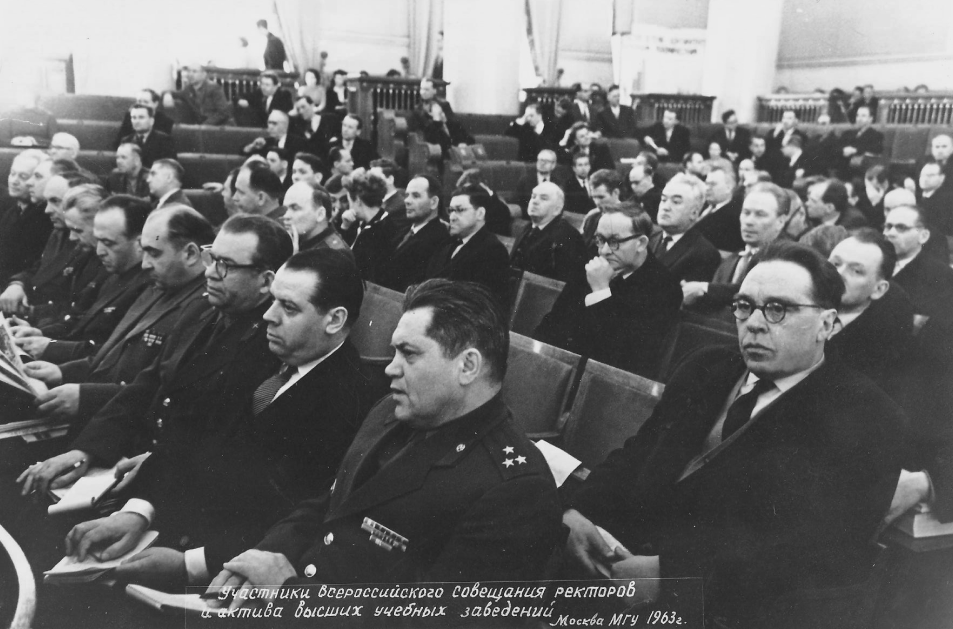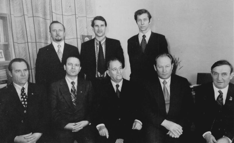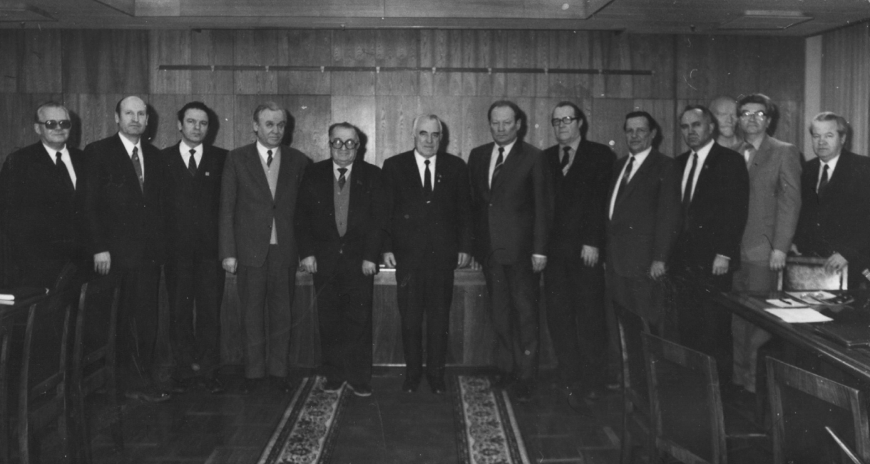 Ректор В.Н. Виноградов, секретарь парторганизации МИНХ и ГП имени И.М. Губкина А.И. Владимиров с руководителями родственных вузов, 1977