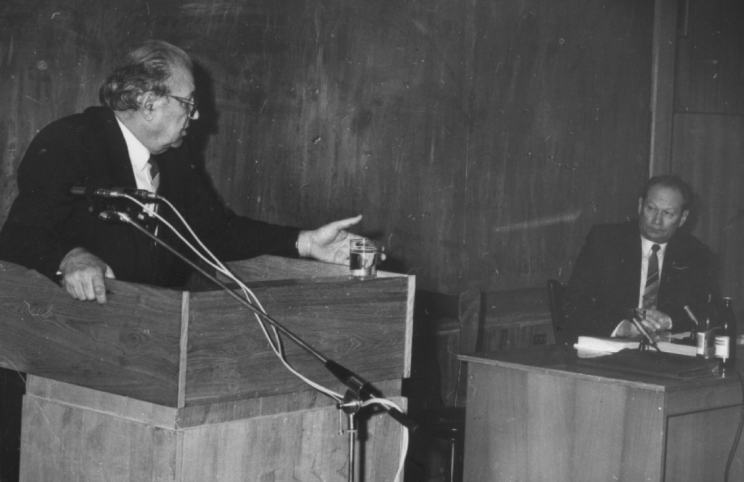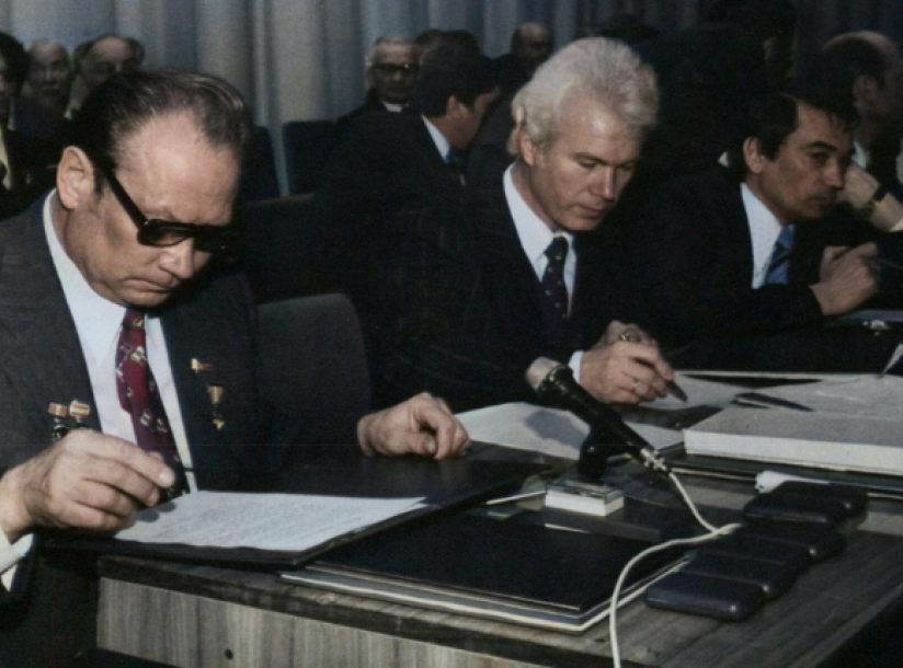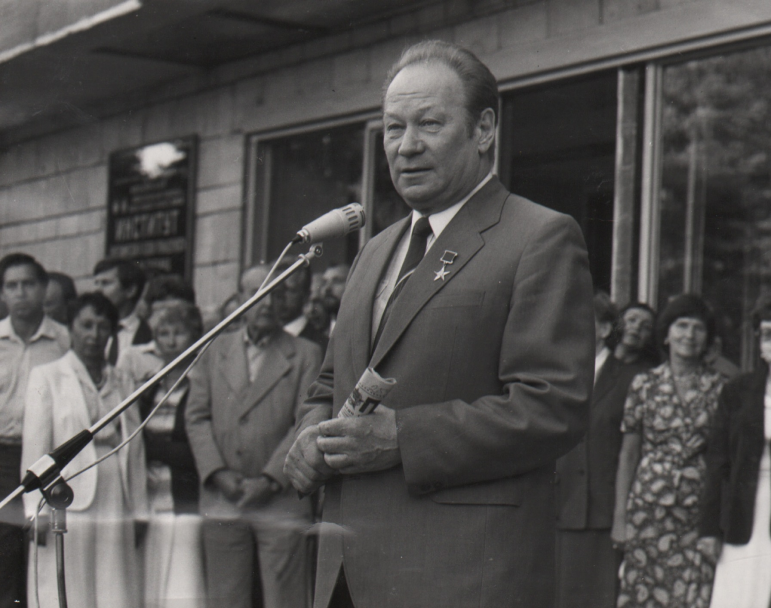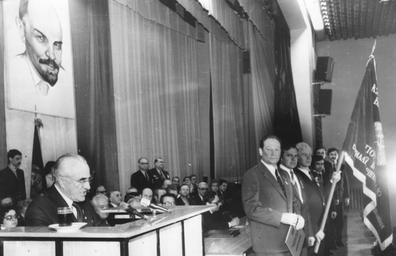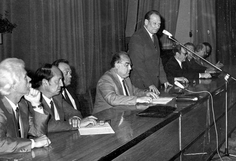 Выступает министр газовой промышленности СССР В.М. Динков. Начало 1980-х гг.